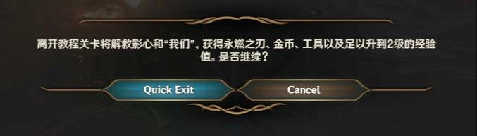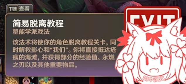 这是一个精简版的《Tutorial Exit》,仅保留传送到疮痍海滩的功能,没有传送至影心处、解救守墓人、击杀残骸中的噬脑怪、桶里的额外经验值和召唤“我们”。如果你要与恶魔指挥官战斗,倒计时将被取消。