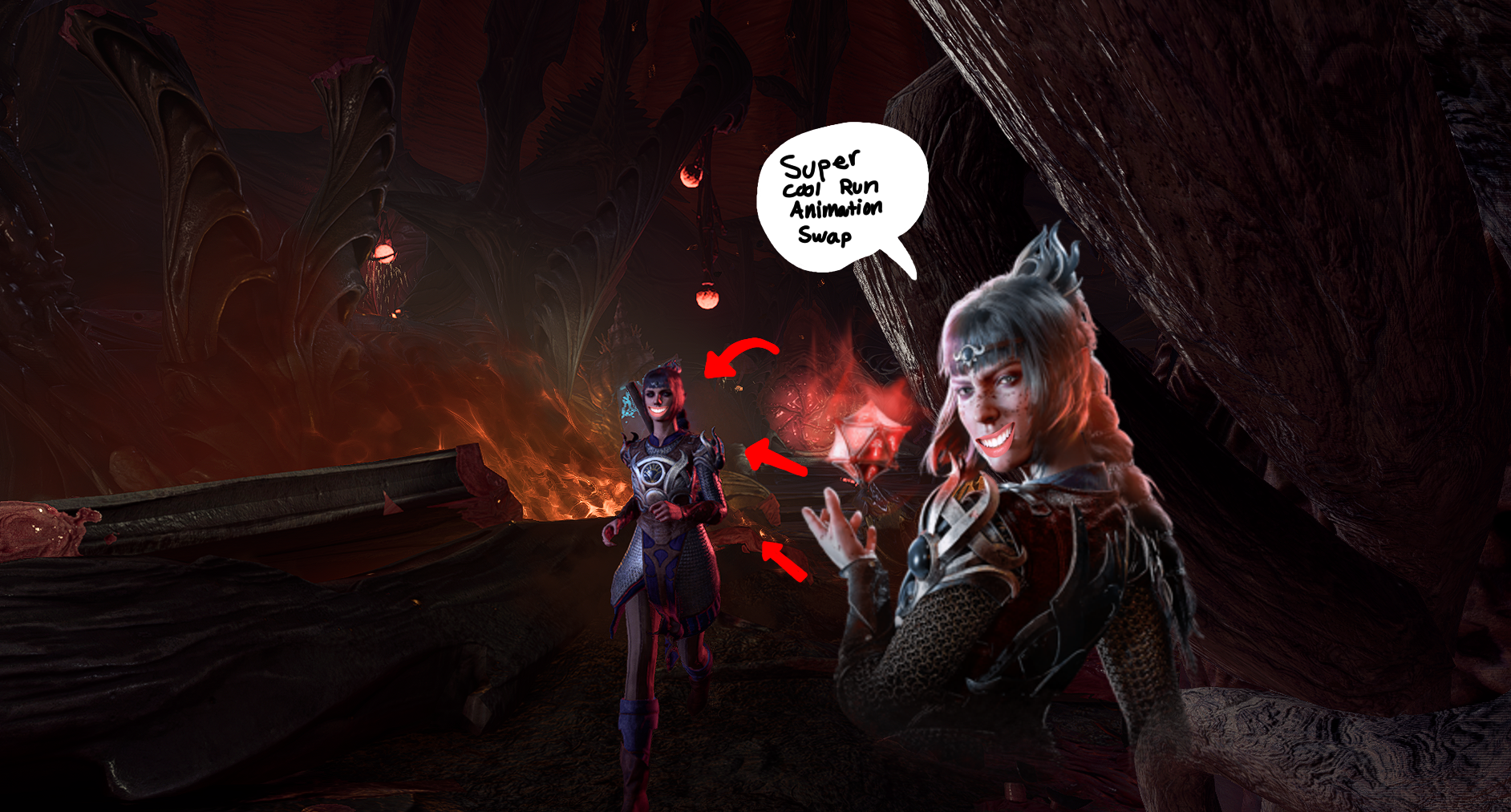 A: 我不太喜欢 HUM/HEL 女性角色默认的跑动动画,但精灵的默认跑动动画看起来很好看,所以为什么不替换呢?