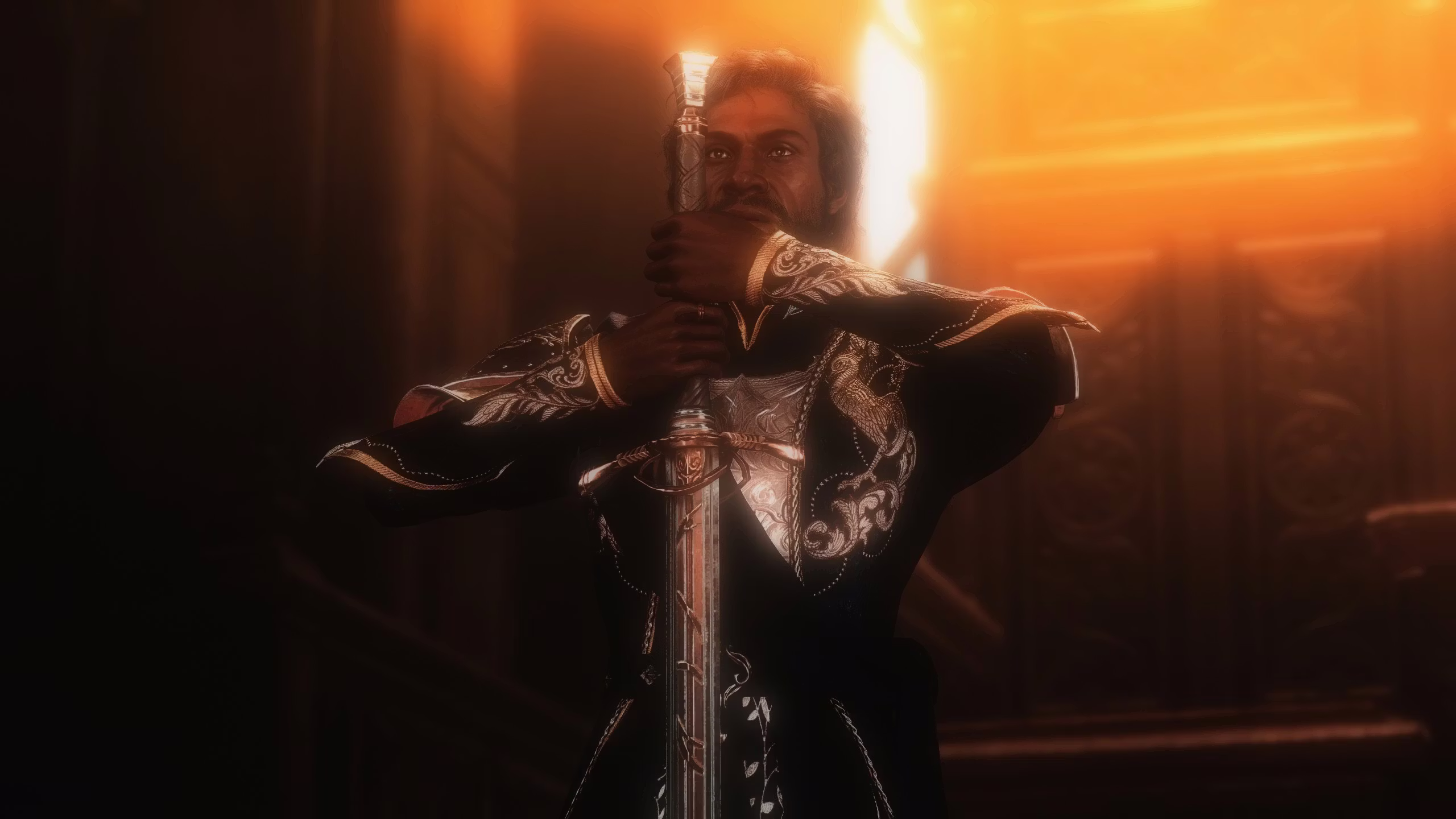 自从玩这款游戏以来,我一直希望给乌尔德·拉文加德更好的装束,以符合他作为大门领导者的地位,这种装束应该散发出皇室和贵族的气息。我觉得像乌尔德这样的人整天穿着大元帅的服装四处走动很奇怪,即使在他前往被绝对教派俘虏之前的地方也是如此。这就是为什么我决定给他一个更皇家的形象来匹配他的角色。