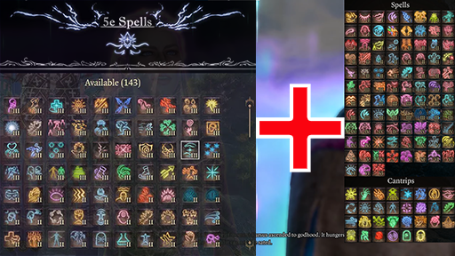 5e Spells 和 Mystra’s Spells 中有很多重复法术,大部分会根据加载顺序相互覆盖。但个别法术的两个版本仍会在角色升级界面同时出现。我编写了一个脚本,将不会互相冲突的重复法术从各职业的法术选择列表中移除,这样在升级时就不会看到两个版本。