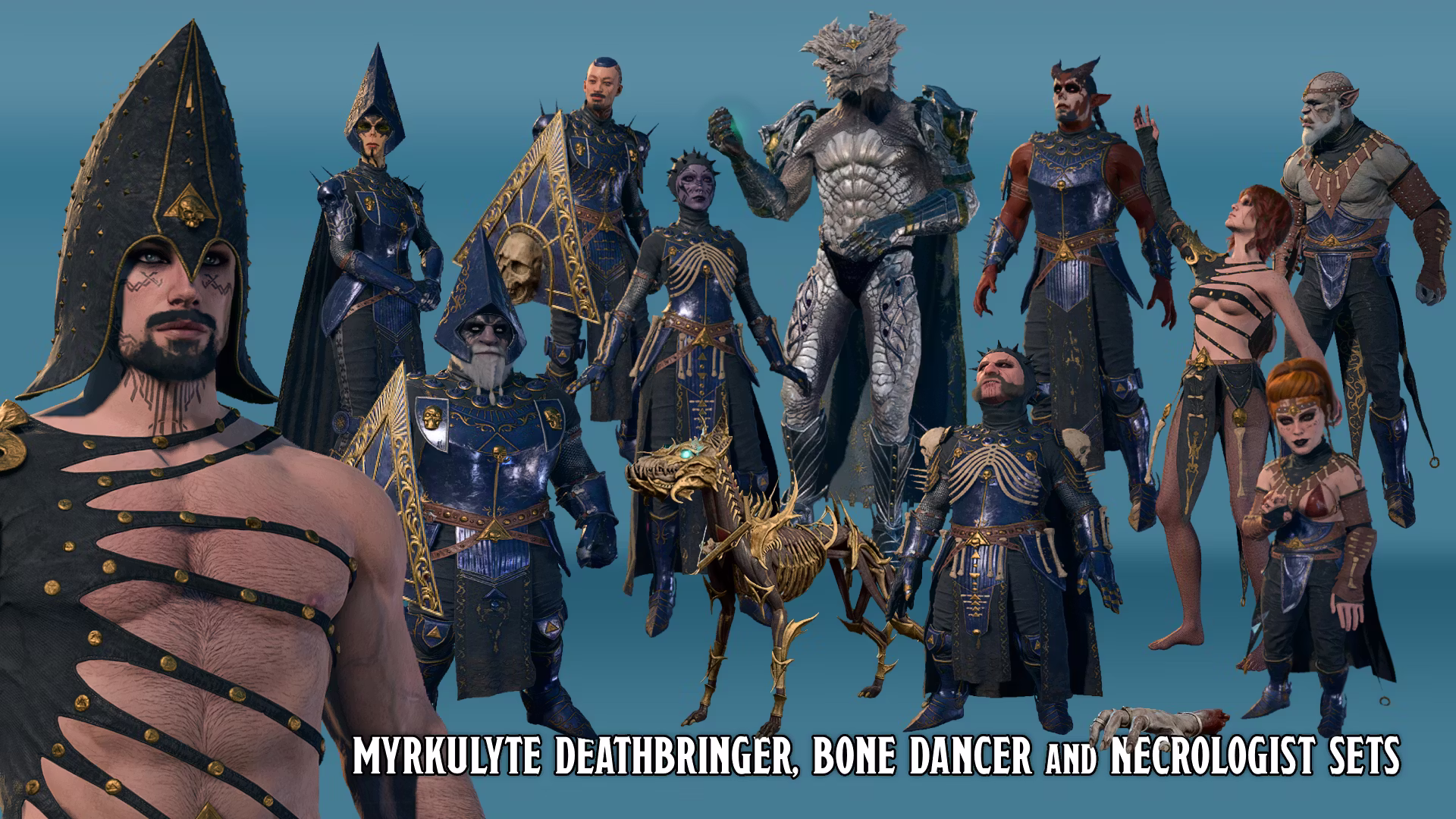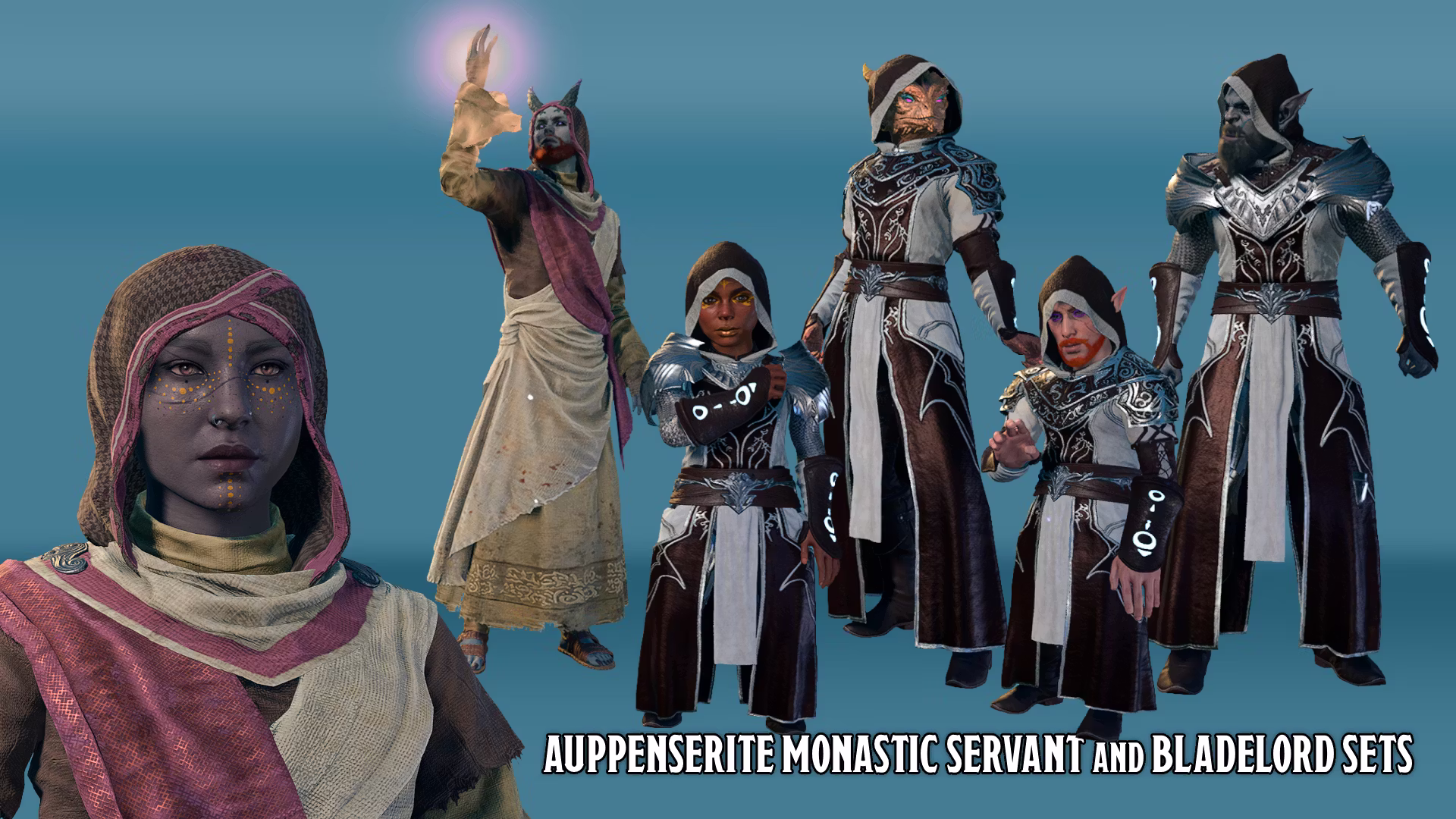400多套盔甲、长袍和配件,供拜厄恩、巴哈尔、米尔库尔、阿斯莫德斯、奥普森纳、科瑞隆·拉瑞森、西里克、艾莉斯特蕾、伊莱玛特、凯勒姆沃、拉瑟安德兰、洛薇亚塔、米利尔、米丝拉、奥格马、乌木女王、塞伦努恩、夏尔、苏尼、席瓦努斯、苏妮、塔隆娜、塔洛斯、提摩拉和沃肯的追随者使用。