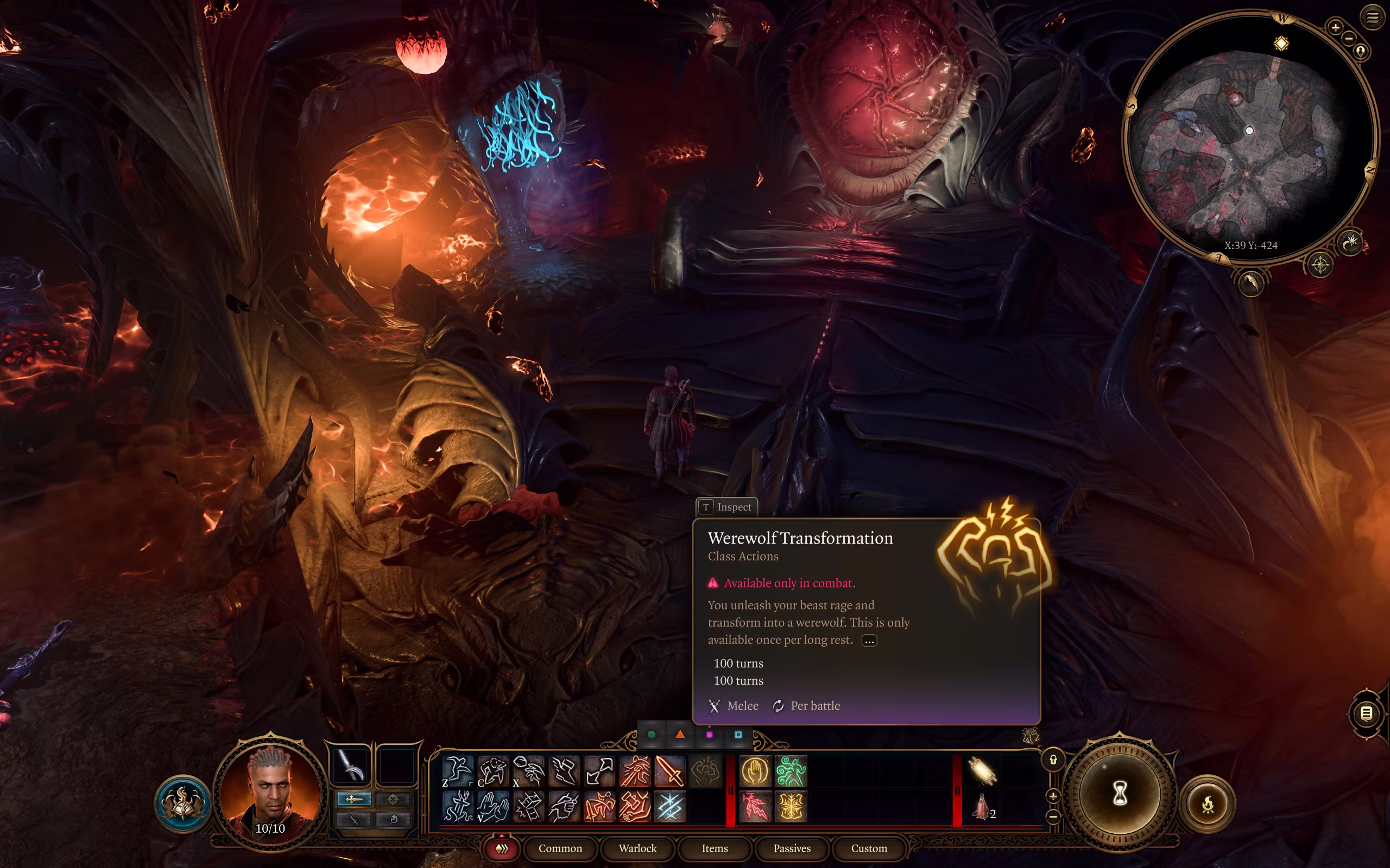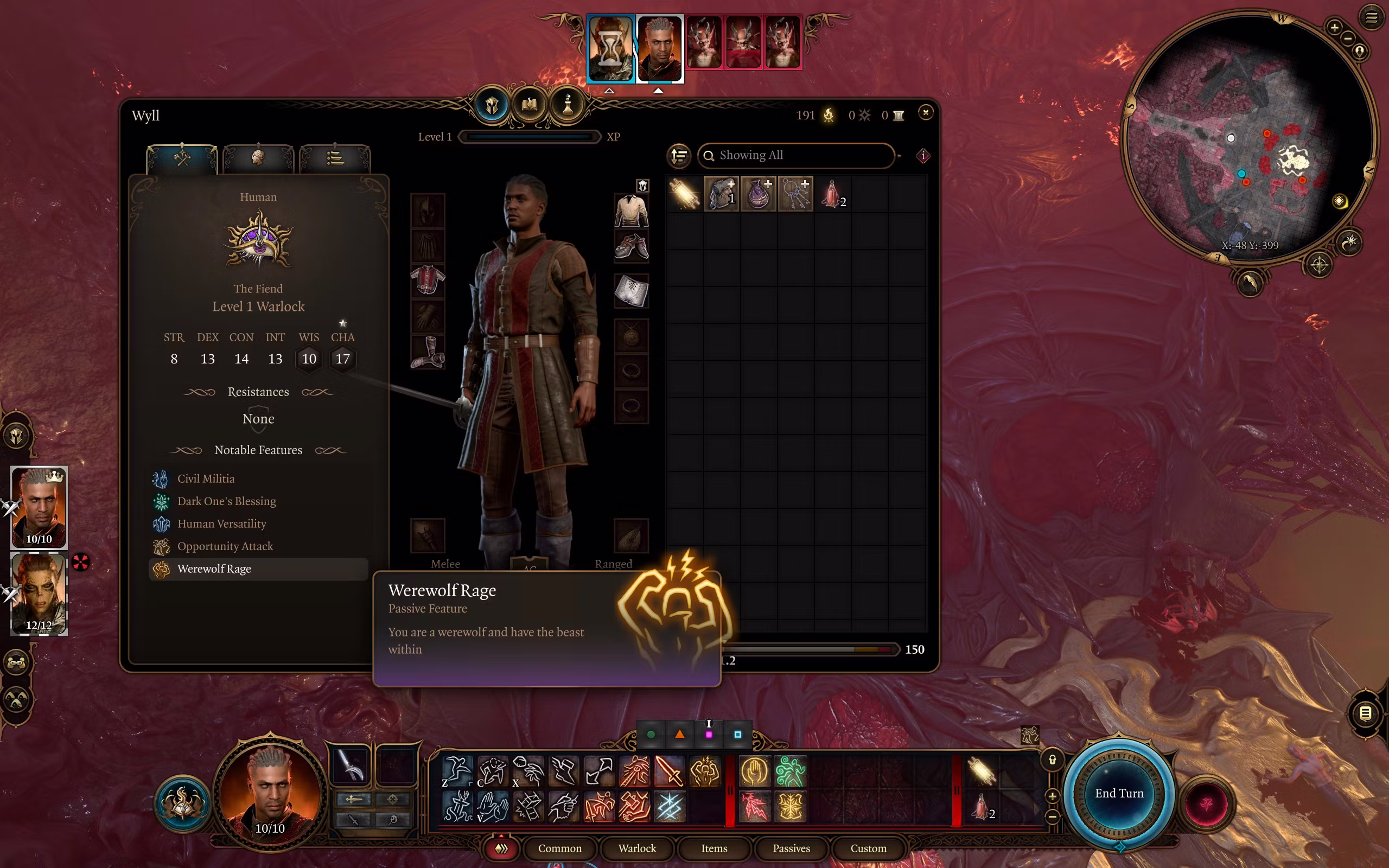 Wyll 有一个秘密,不仅仅是他与一位资助者之间的关系以及他是巫师的身份。他的脸上有爪痕和一只眼睛缺失,另一个隐藏的秘密就摆在明面上——Wyll 是一名狼人,在战斗中可以变身为这种形态。