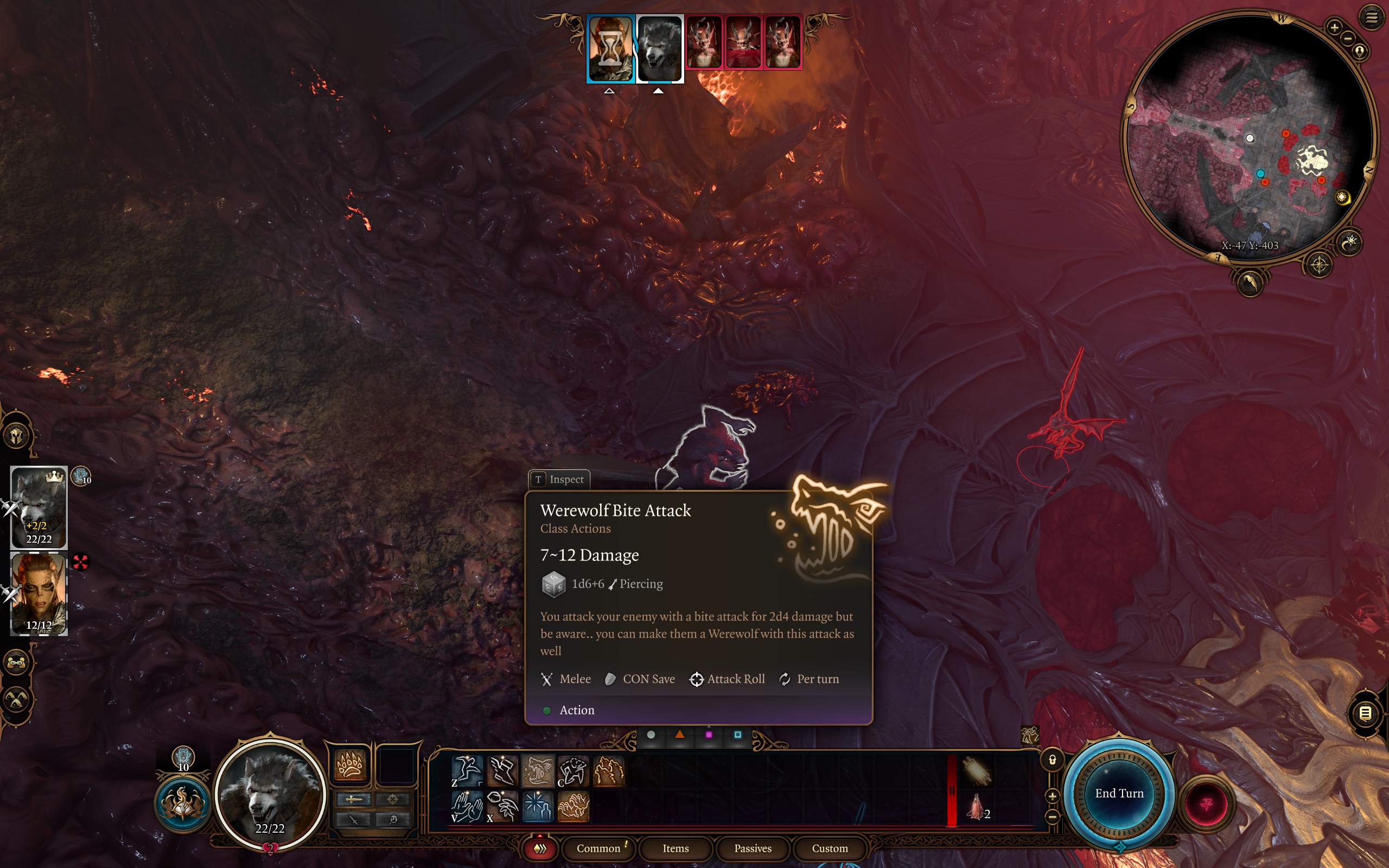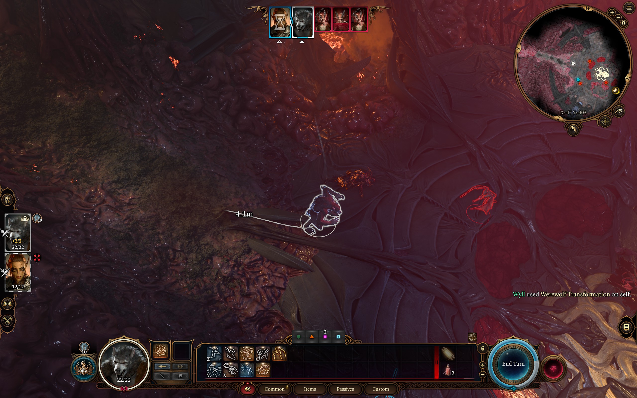 Wyll 有一个秘密,不仅仅是他与一位资助者之间的关系以及他是巫师的身份。他的脸上有爪痕和一只眼睛缺失,另一个隐藏的秘密就摆在明面上——Wyll 是一名狼人,在战斗中可以变身为这种形态。
