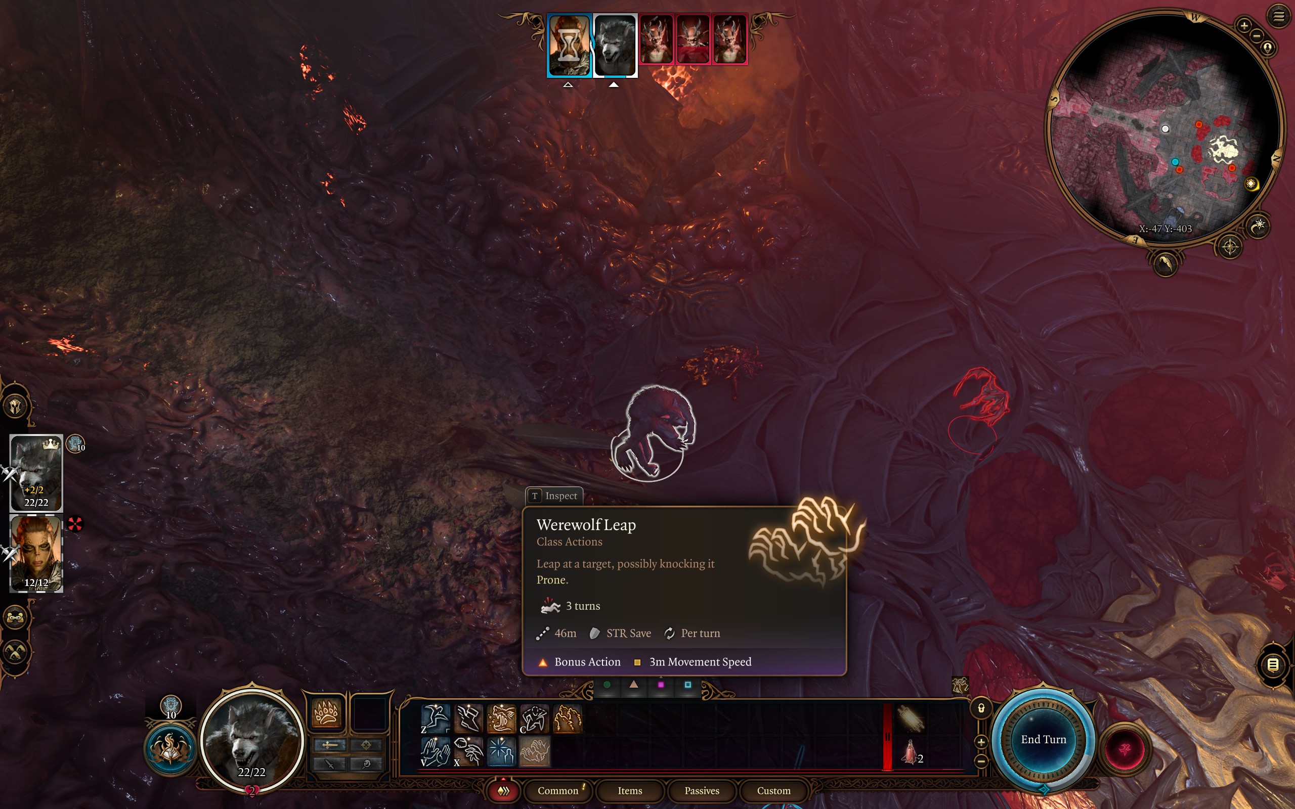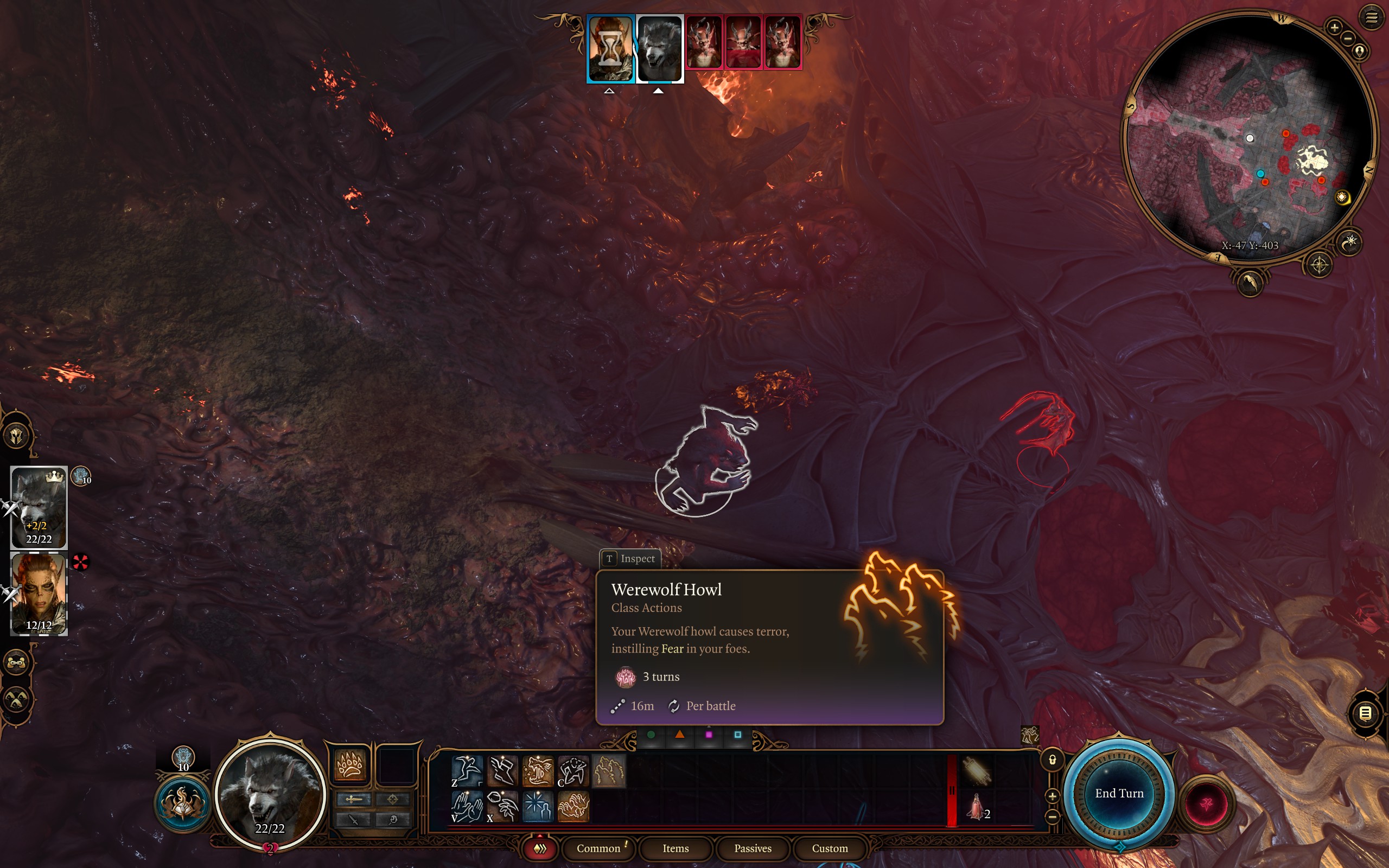 - 你可以每场战斗中使用一次狼嚎,使 16 米范围内的敌人陷入恐惧(除非他们通过 Wisdom DC 检查)。此外你还会召唤以下生物: