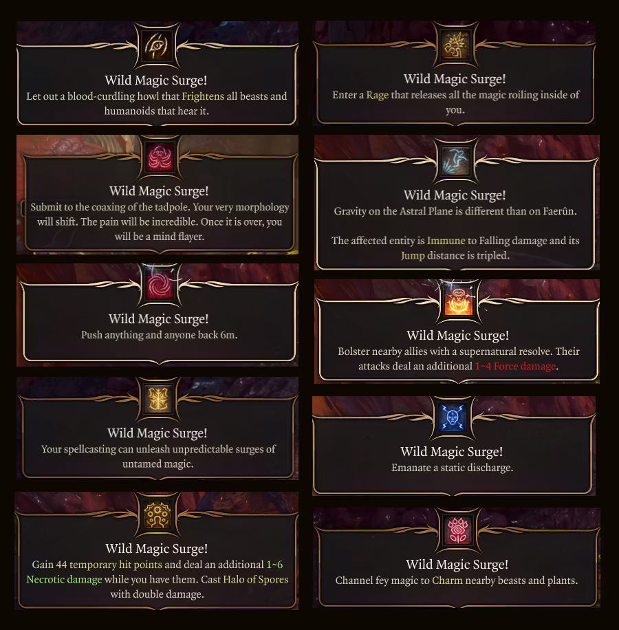 总共有50种可能的结果(根据你的德鲁伊等级,等级越高威胁越大,增益效果越强)。