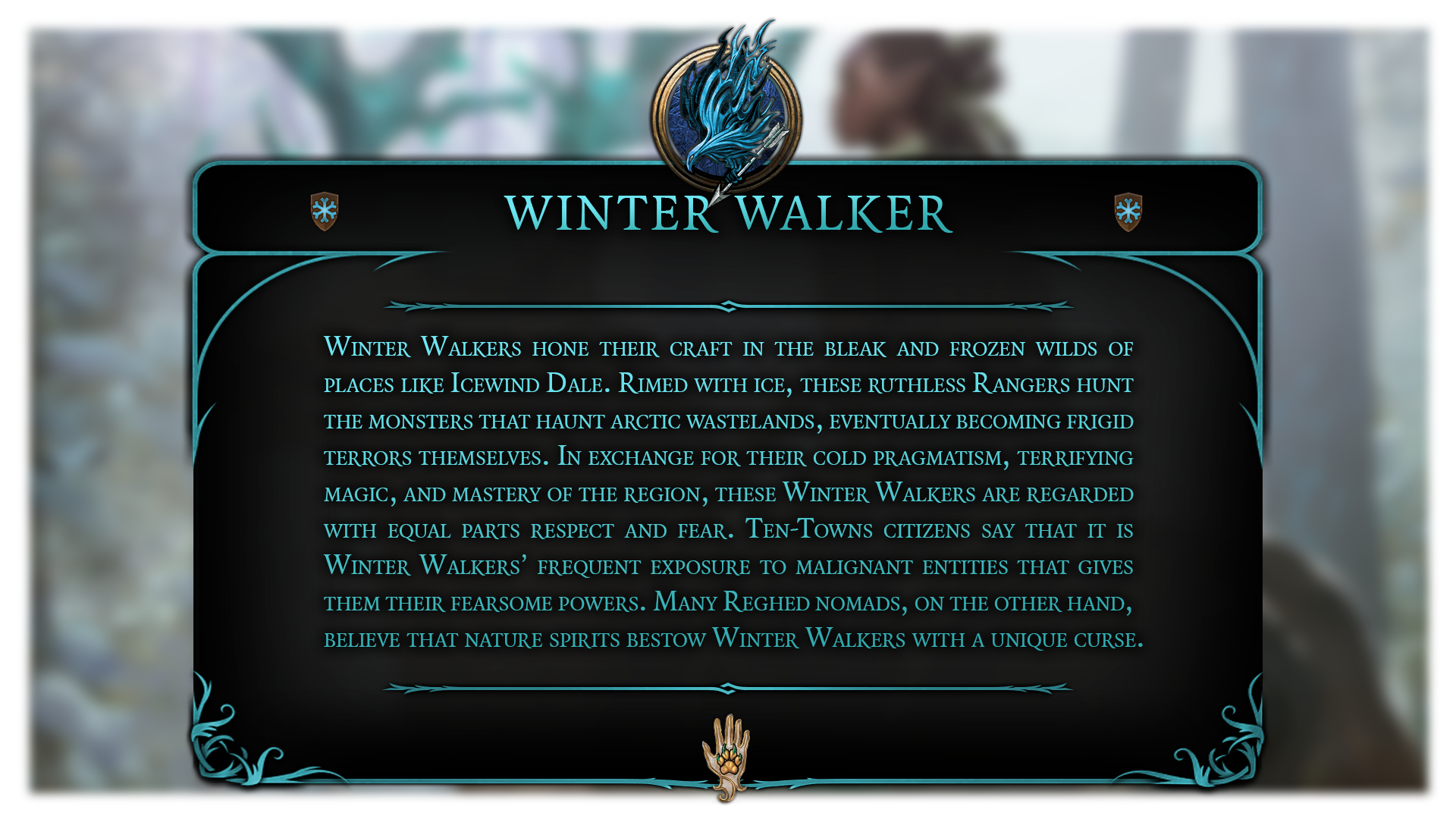 Winter Walker 是一个专注于寒冷天气和冰霜魔法的游侠副职业,为玩家提供独特的战斗能力和生存技巧。它包括一系列与冰雪相关的技能,使你在严寒环境中更具优势。