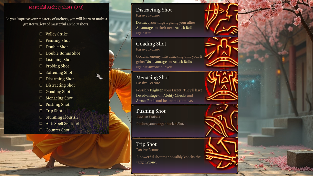 - 我在9级添加了触发射击技能,以便增加纵向发展。该子职业已经有很多横向发展内容,但我感觉在6级之后纵向发展的部分有些欠缺。